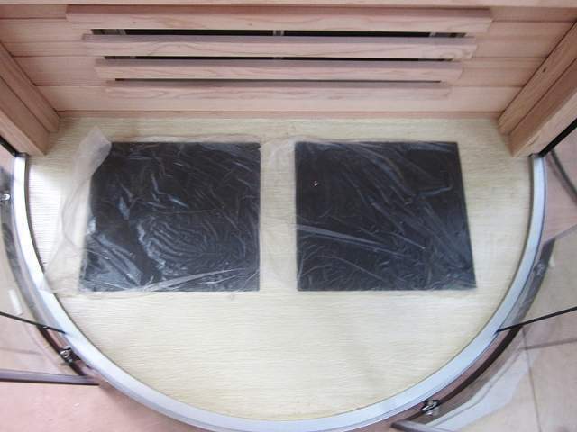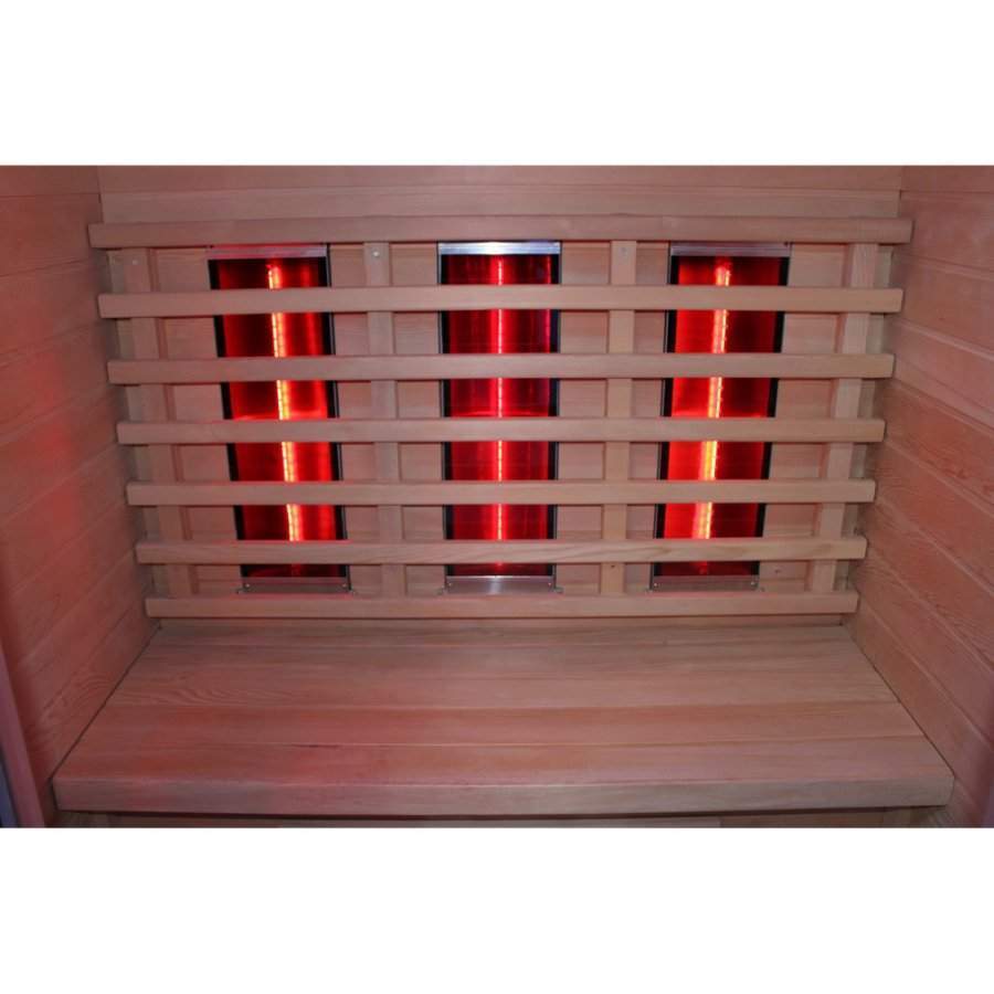 Стильная инфракрасная комнатная сауна с раздвижными дверцами для экономии пространства. Стеклокерамические нагреватели.