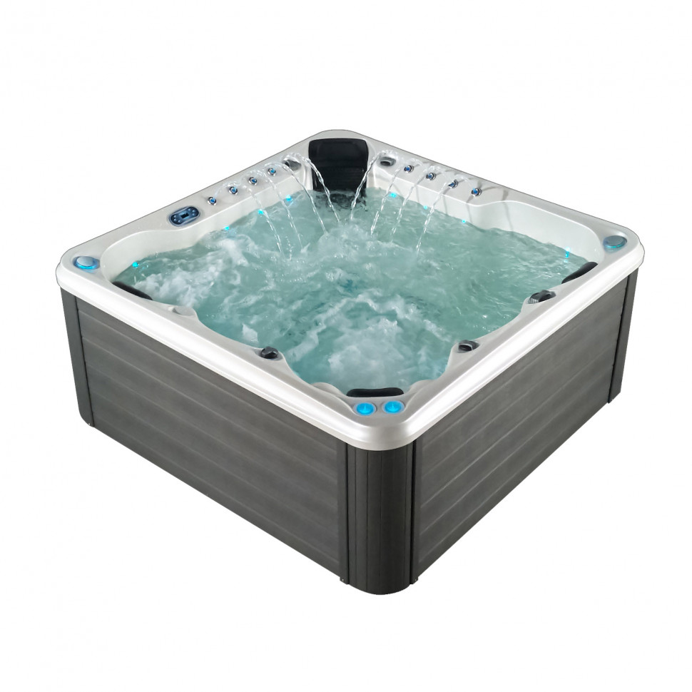 Изысканный квадратный спа-комплекс, сочетающий интенсивный гидромассаж с элегантной световой палитрой. Идеальное решение для создания атмосферы премиум-спа в условиях ограниченного пространства.
